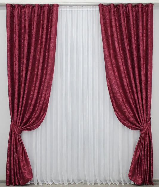 Elegant Burgundy Jacquard Curtains – Set of 2 – 65% Light Blockin