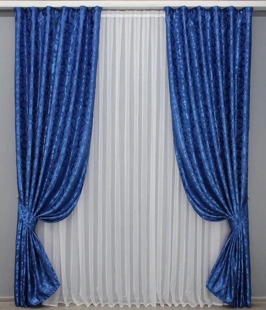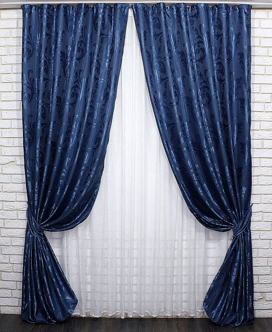 Elegant Blue Jacquard Curtains – Lilia Collection – Set of 2 – 65% Light Blocking