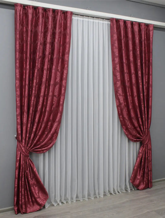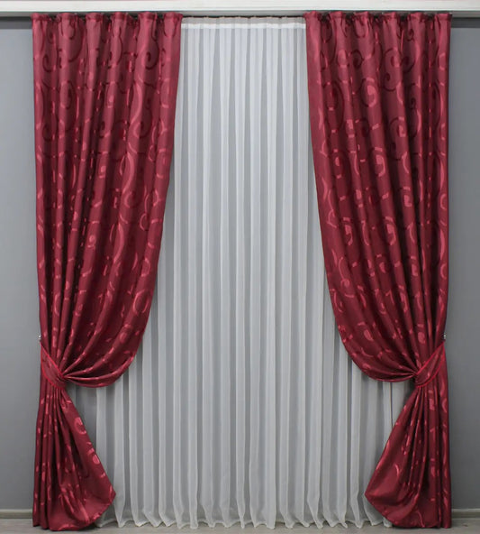 Elegant Burgundy Jacquard Curtains with Pattern – Set of 2 – 65% Light Blocking