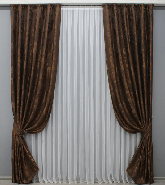 Elegant Brown Jacquard Curtains – Set of 2 – 65% Light Blocking