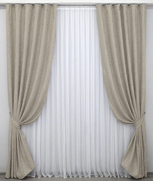 Elegant Linen Curtains with Marble Pattern – Light Beige – Set of 2 Panels