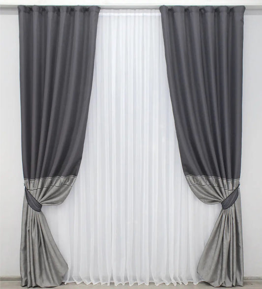 Elegant Linen Curtains – Dark Grey with Silver – Set of 2 Panels