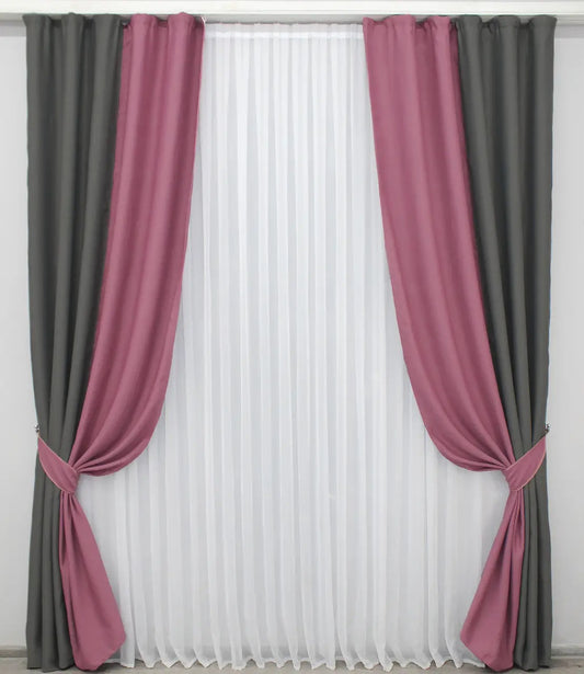 Graphite & Raspberry Combined Blackout Curtains – Set of 2 Panels – 95% Light Blocking