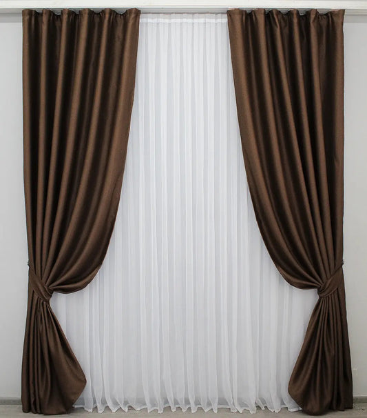 Elegant Brown Blackout Curtains – Fusion Dimout Collection – Set of 2 – 95% Light Blocking
