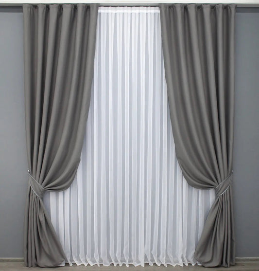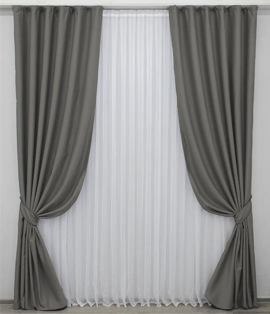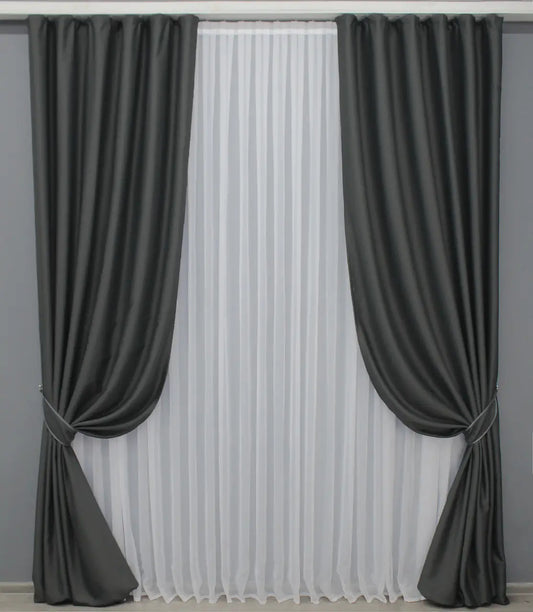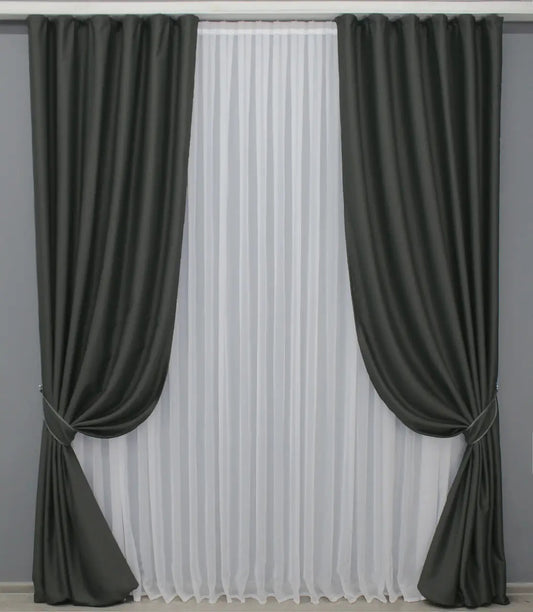Graphite Grey Blackout Curtains | Light Blocking & Thermal Insulation| Set of 2 panels
