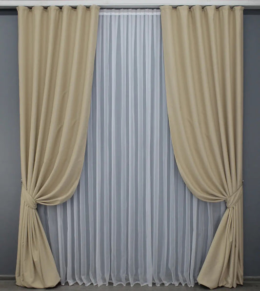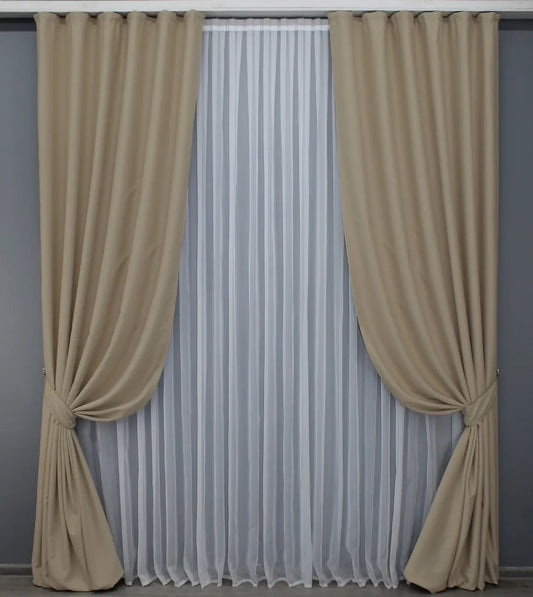 Elegant Beige Blackout Curtains – Fusion Dimout Collection – Set of 2 – 95% Light Blocking