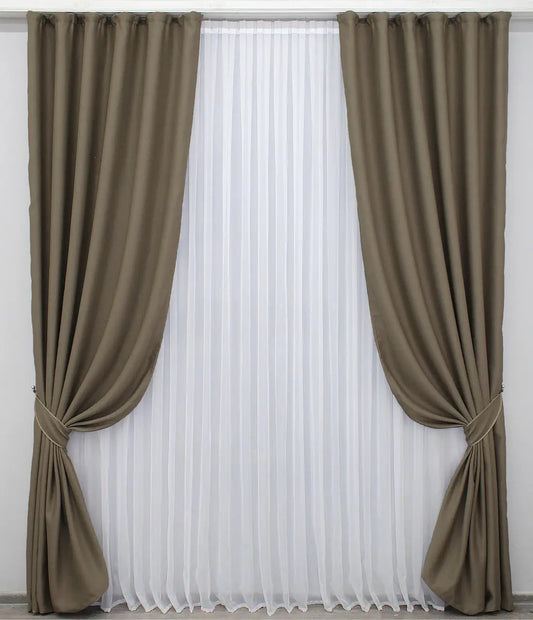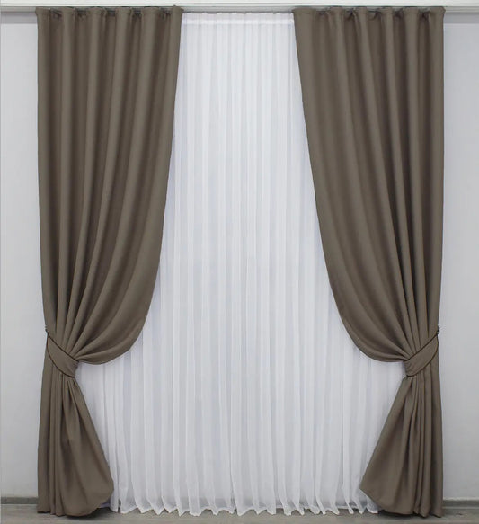 Elegant Dark Beige Blackout Curtains – Midnight Collection – Set of 2 – 95% Light Blocking
