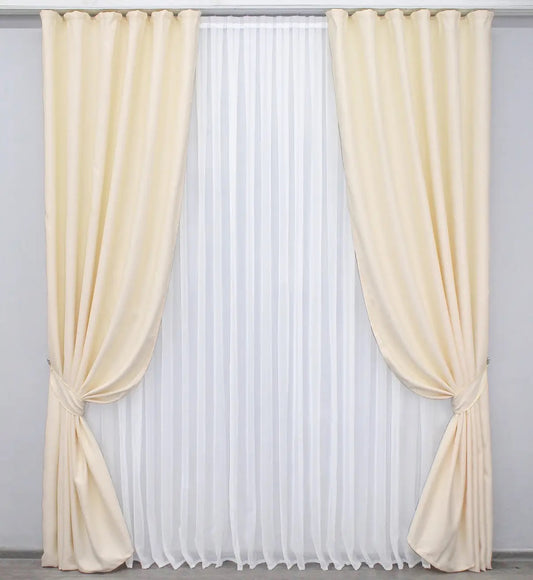 Elegant Cream Blackout Curtains – Midnight Collection – Set of 2 – 95% Light Blocking