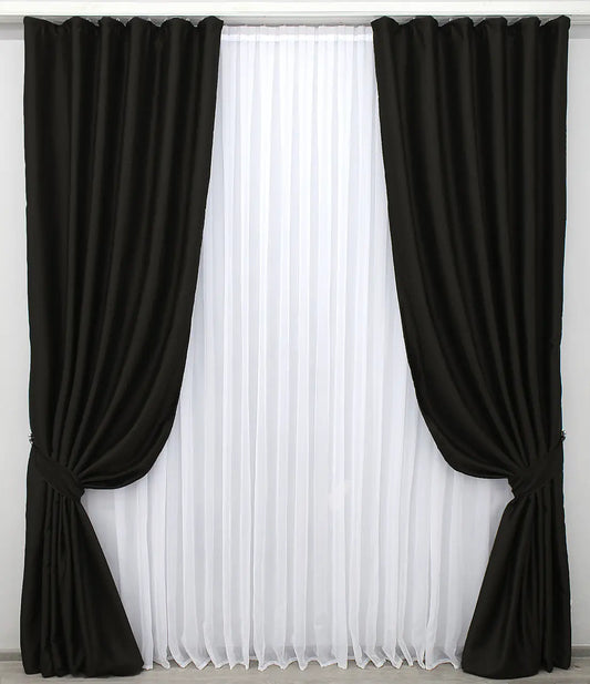 Blackout Black Curtains | 95% Light Blocking & Thermal Insulation| Set of 2 panels