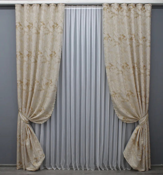 Elegant Beige Jacquard Curtains – Magic Collection – Set of 2 – 65% Light Blocking