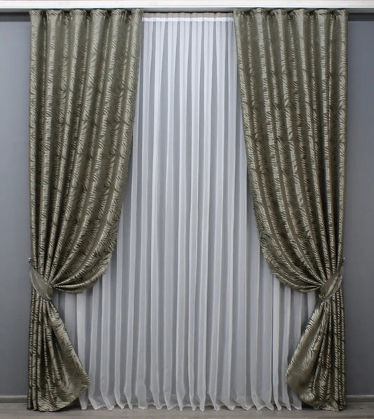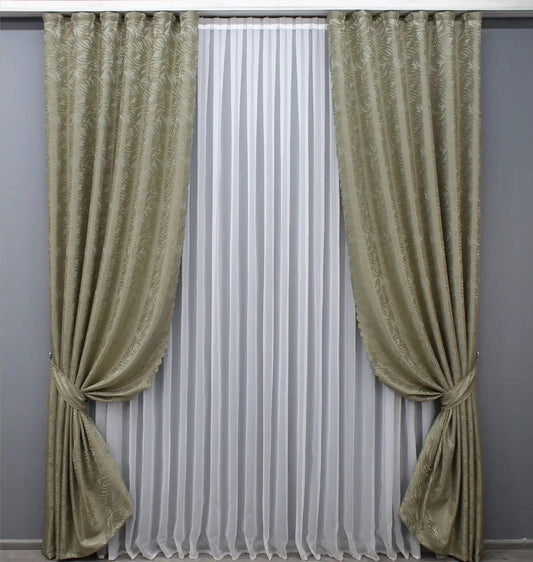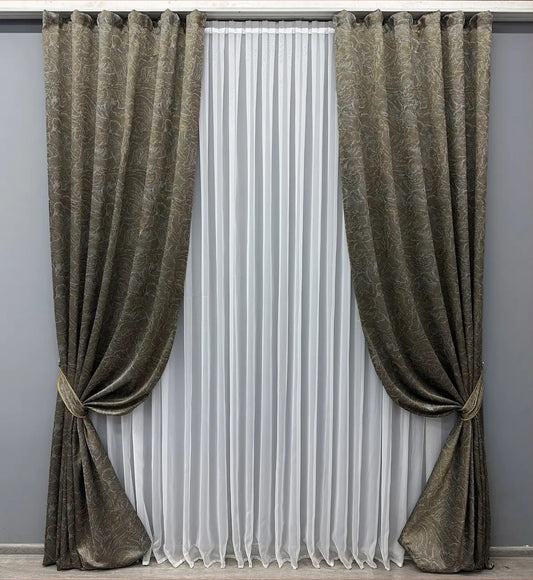 Elegant Khaki Jacquard Curtains – Magic Collection – Set of 2 – 65% Light Blocking
