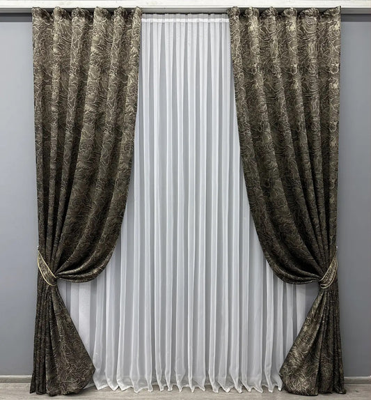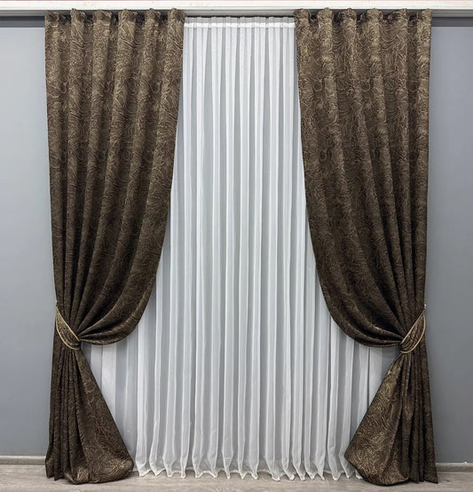 Discover our exquisite collection of Jacquard curtains, intricately woven with elegant patterns that exude refinement and style. Designed with exceptional craftsmanship, these curtains feature a luxurious texture and intricate detailing that elevate any space. Their rich fabric and sophisticated designs seamlessly blend into both modern and classic interiors, adding a touch of grandeur and timeless charm. Whether you're looking to create an opulent ambiance or simply enhance the elegance of your home, our Jacquard curtains offer the perfect balance of beauty, functionality, and sophistication. Experience the art of fine weaving and transform your living space with our stunning collection.
