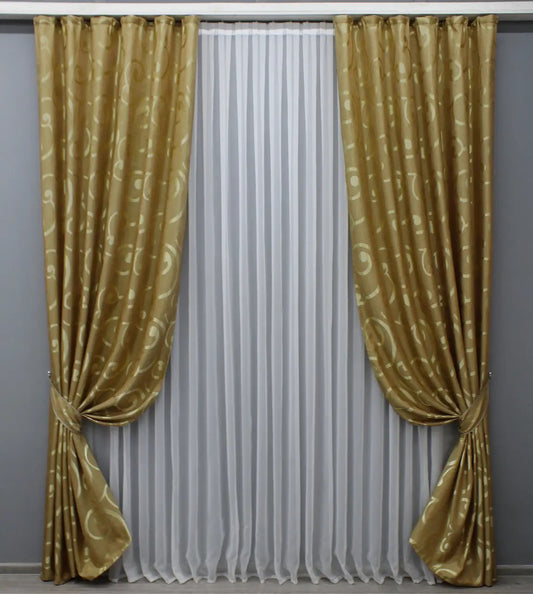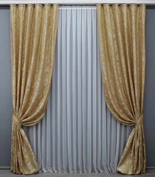 Elegant Gold Jacquard Curtains – Set of 2 – 65% Light Blocking