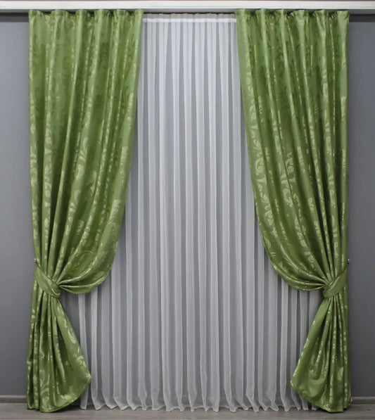 Elegant Light Green Jacquard Curtains – Lilia Collection – Set of 2 – 65% Light Blocking