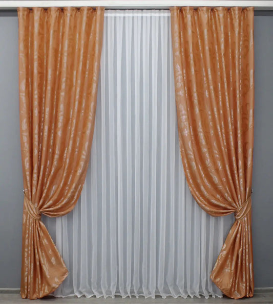 Elegant Orange Jacquard Curtains – Lilia Collection – Set of 2 – 65% Light Blocking