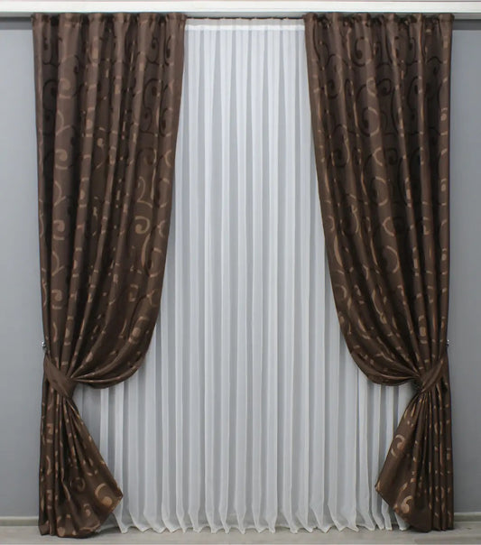 Elegant Brown Jacquard Curtains – Set of 2 – 65% Light Blocking