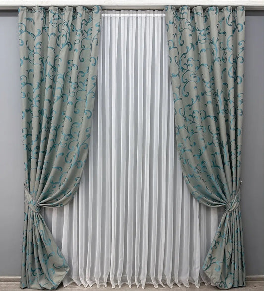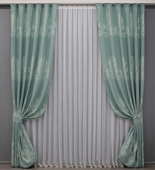 Elegant Turquoise Jacquard Curtains – Set of 2 – 75% Light Blocking