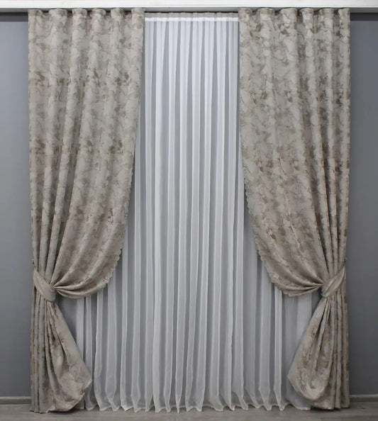 Elegant Beige Jacquard Curtains – Set of 2 – 75% Light Blocking