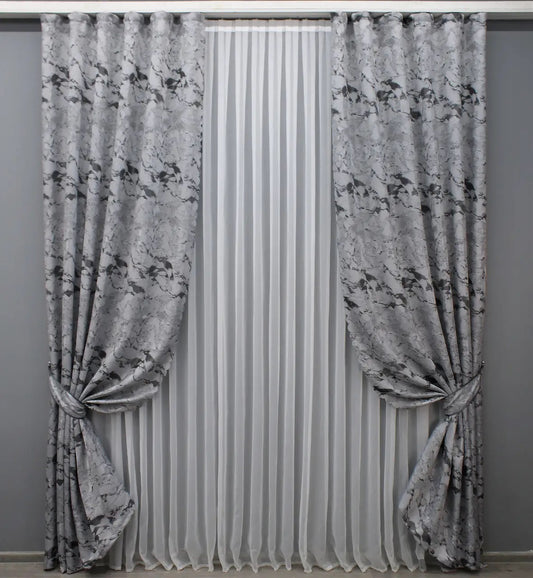 Elegant Light Gray & Black Jacquard Curtains – Marble Collection – Set of 2 – 70% Light Blocking