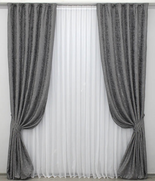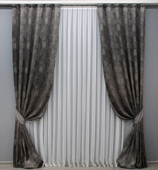 Elegant Linen Curtains with Marble Pattern – Grey – Set of 2 Panels