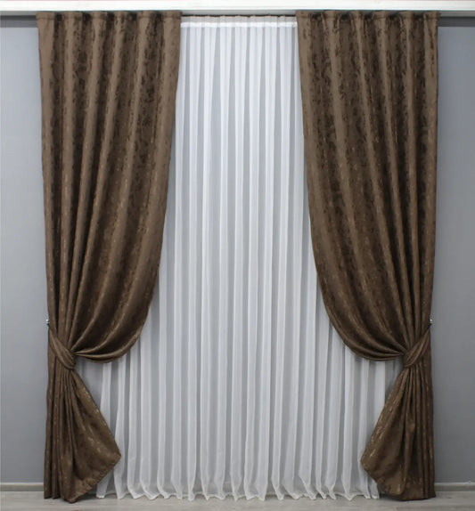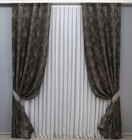 Elegant Linen Curtains with Marble Pattern – Dark Cocoa – Set of 2 Panels