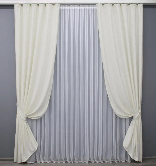 Elegant Linen Curtains with Marble Pattern – Cream – Set of 2 Panels