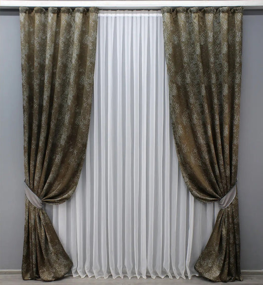 Luxury Linen Curtains with Marble Pattern – Wenge & Grey – Set of 2 Panels