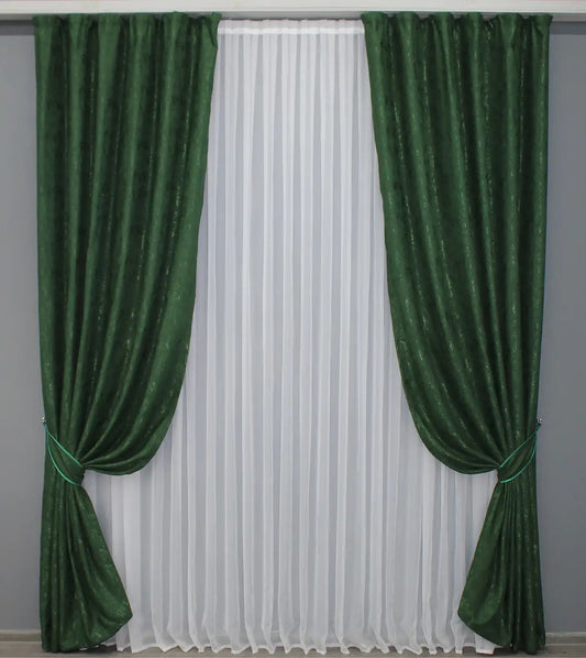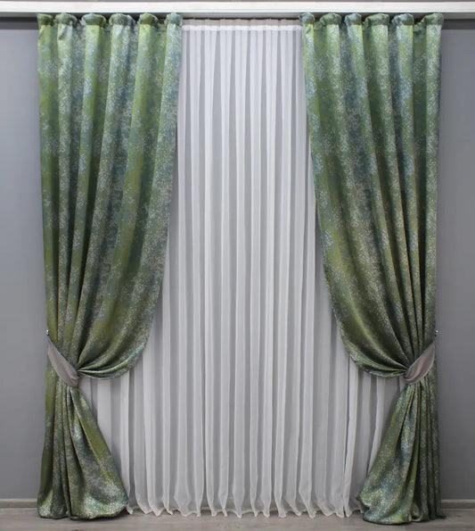 Luxurious Linen Curtains with Marble Pattern – Emerald – Set of 2 Panels