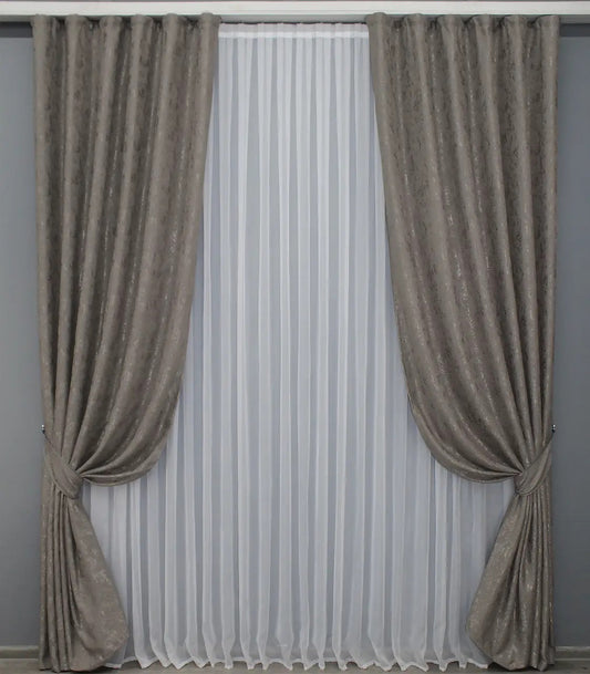 Linen Curtains with Marble Pattern – Brown-Grey – Set of 2 Panels