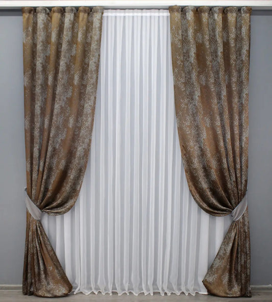 Linen Curtains with Marble Pattern – Copper and Grey – Set of 2 Panels