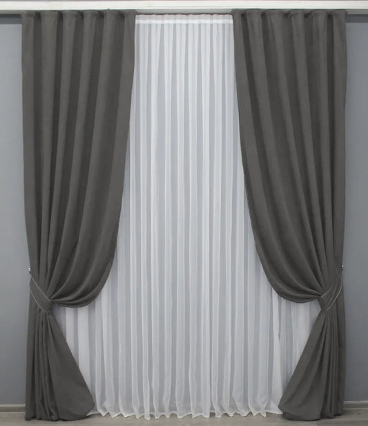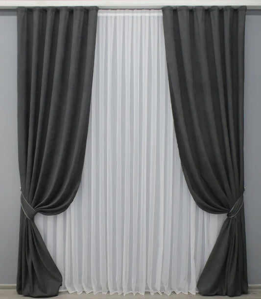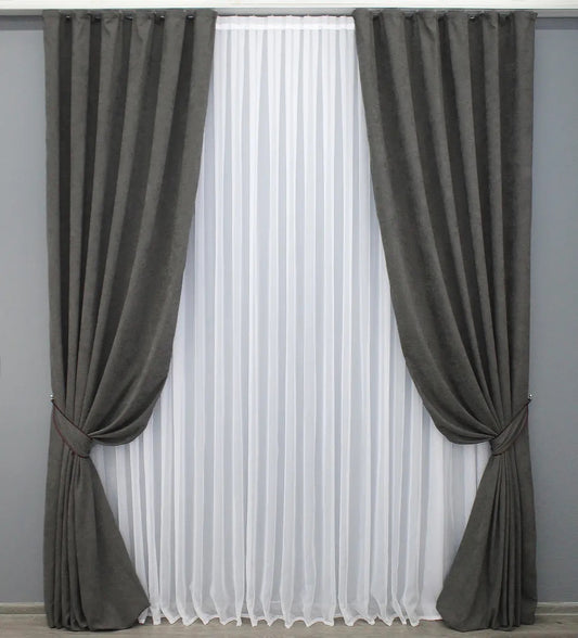 Elegant Dark Gray Microvelvet Curtains – Set of 2 – 70% Light Blocking