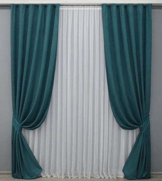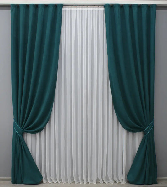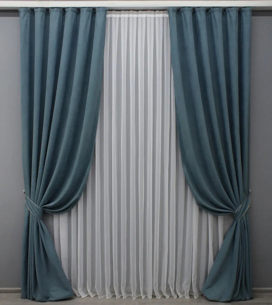 Elegant Turquoise Microvelvet Curtains – Set of 2 – 70% Light Blocking