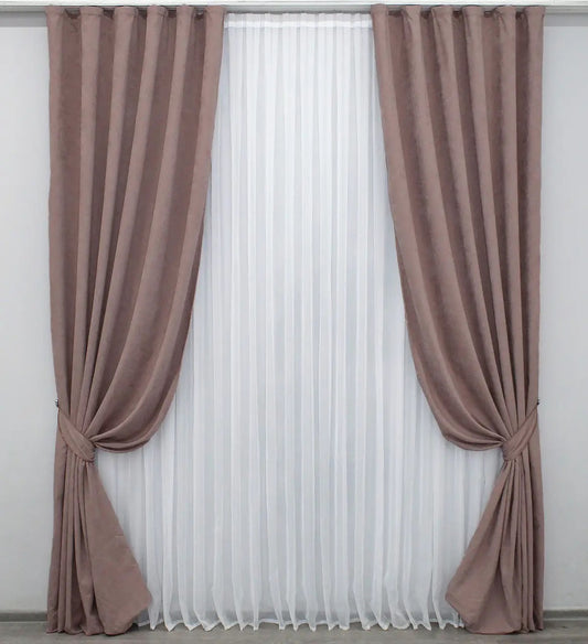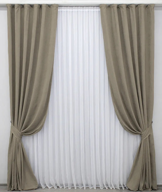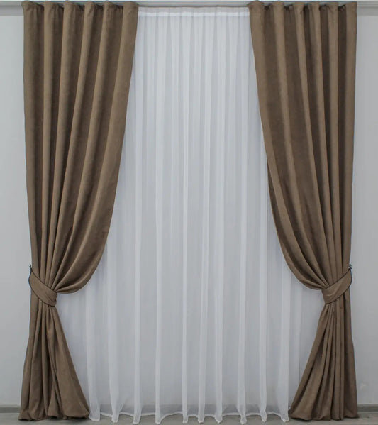 Elegant Dark Beige Microvelvet Curtains – Set of 2 – 70% Light Blocking
