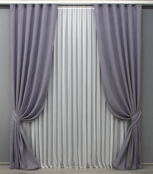 Elegant Lavender Gray Microvelvet Curtains – Set of 2 – 70% Light Blocking
