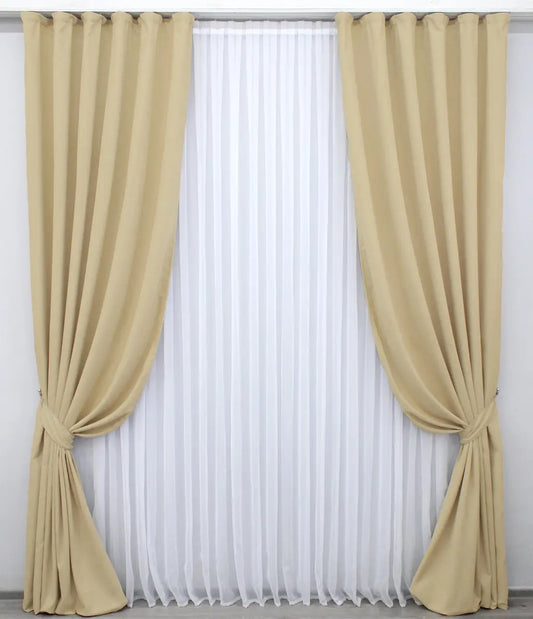 Elegant Beige Microvelvet Curtains – Set of 2 Panels – 70% Light Blocking
