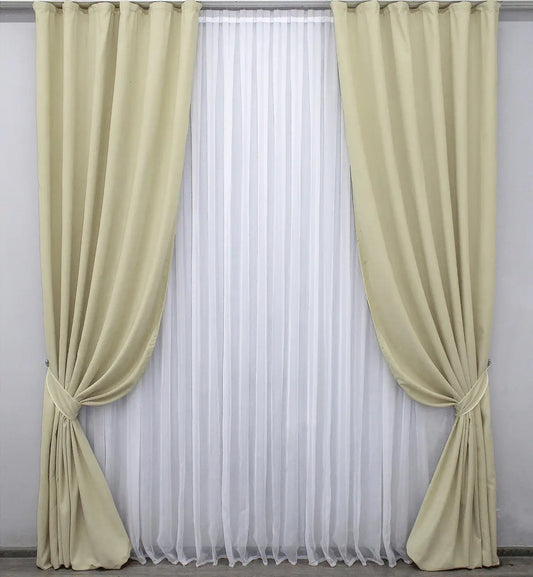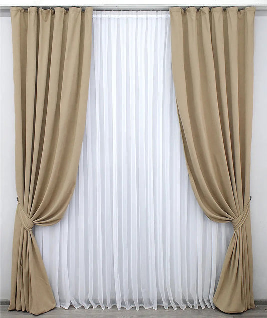Elegant Beige Microvelvet Curtains – Set of 2 – 70% Light Blocking