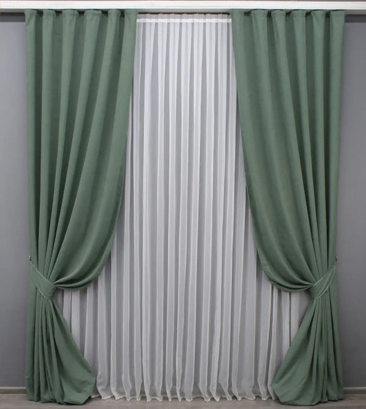 Elegant Pistachio Microvelvet Curtains – Set of 2 – 70% Light Blocking