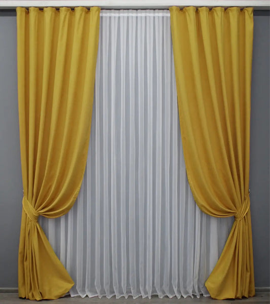 Luxurious Yellow Microvelvet Curtains – Set of 2 – 70% Light Blocking