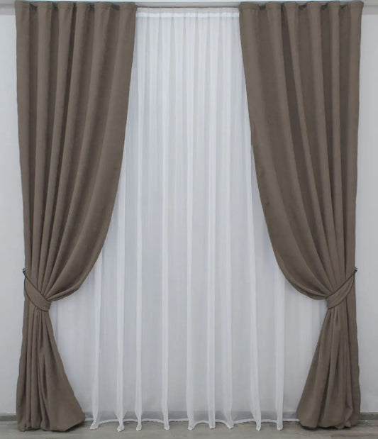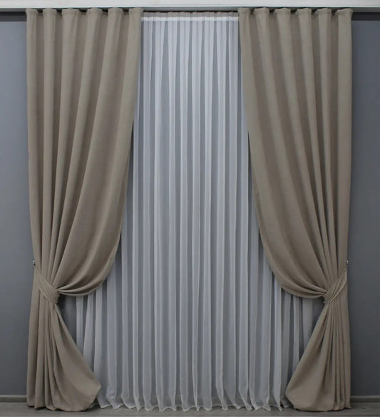 Elegant Taupe Microvelvet Curtains – Set of 2 – 70% Light Blocking
