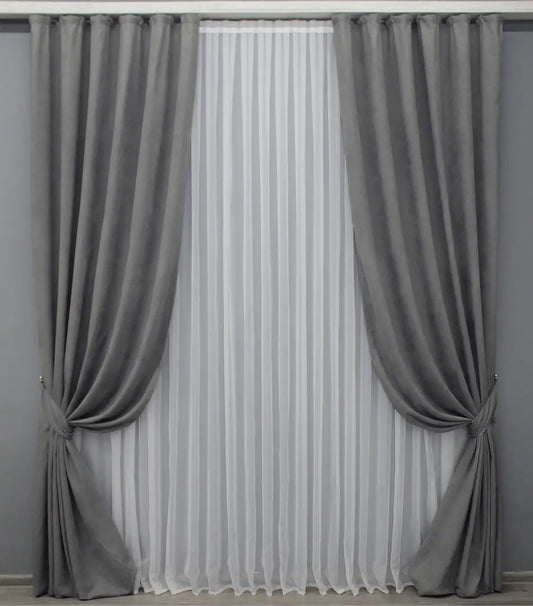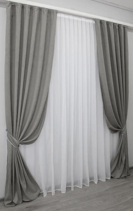 Elegant Gray Microvelvet Curtains – Set of 2 – 70% Light Blocking