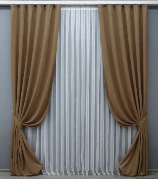 Elegant Cappuccino Microvelvet Curtains – Set of 2 – 70% Light Blocking