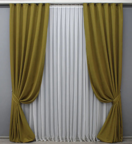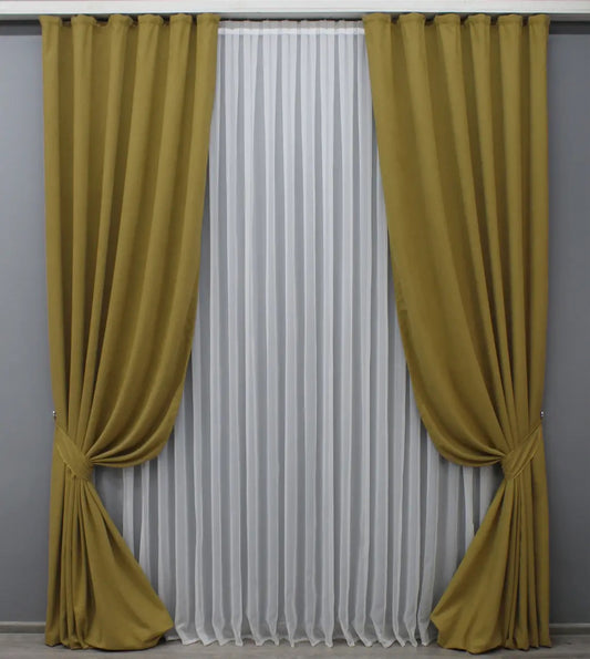 Elegant Mustard Microvelvet Curtains – Set of 2 – 70% Light Blocking