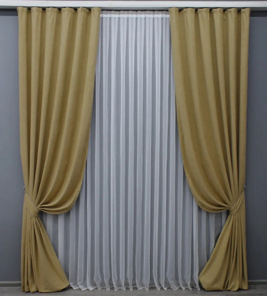 Elegant Sand Microvelvet Curtains – Set of 2 – 70% Light Blocking