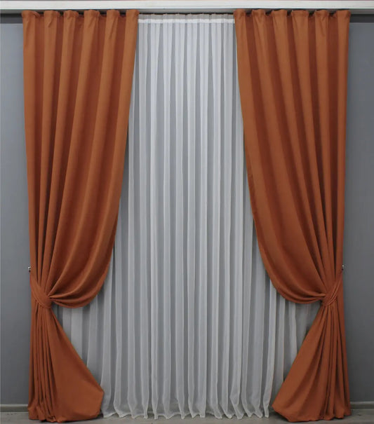 Elegant Terracotta Microvelvet Curtains – Set of 2 – 70% Light Blocking