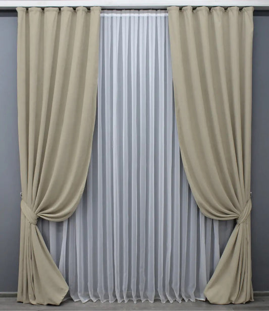 Elegant Beige Microvelvet Curtains – Set of 2 – 70% Light Blocking
