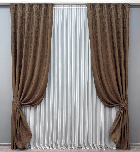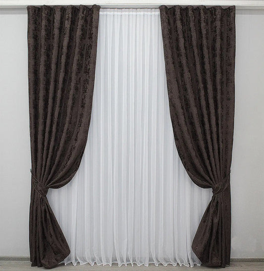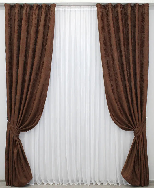 Jacquard Curtains Brown – Sultan YL Collection – Set of 2 Panels