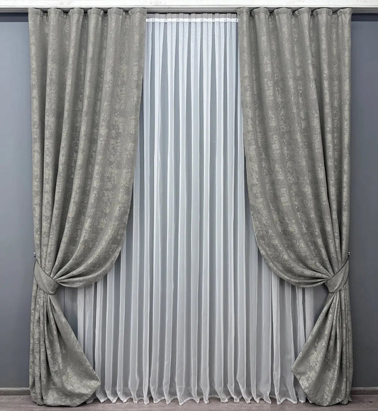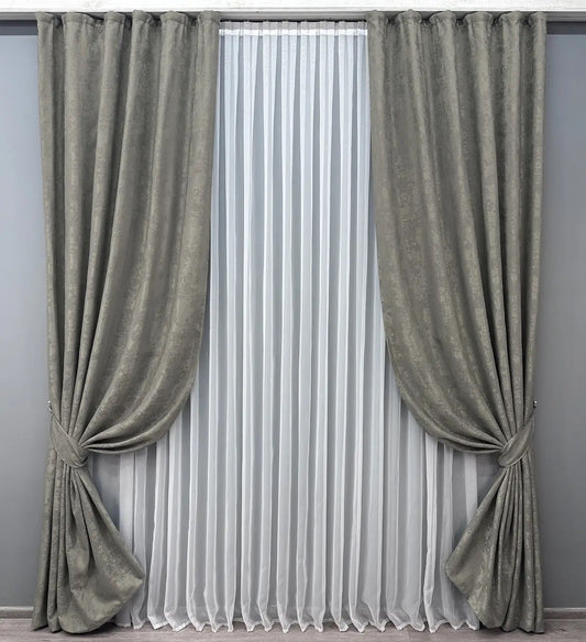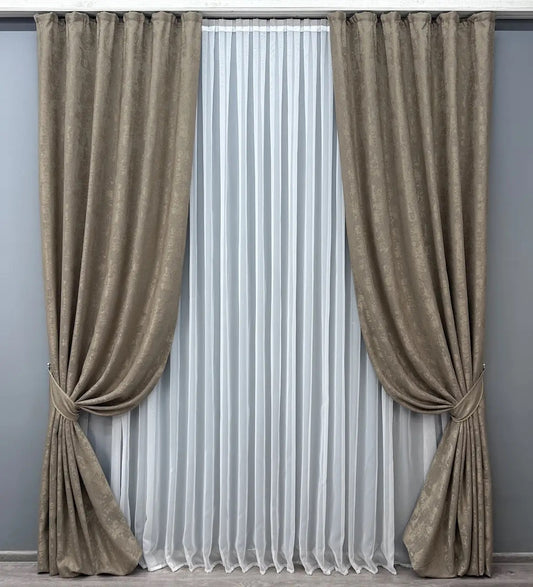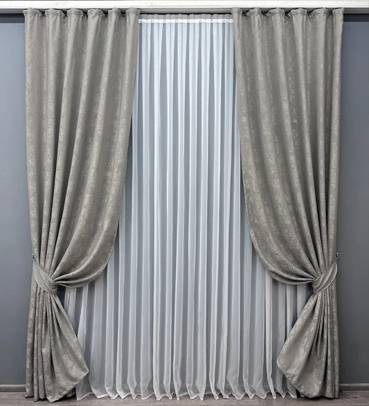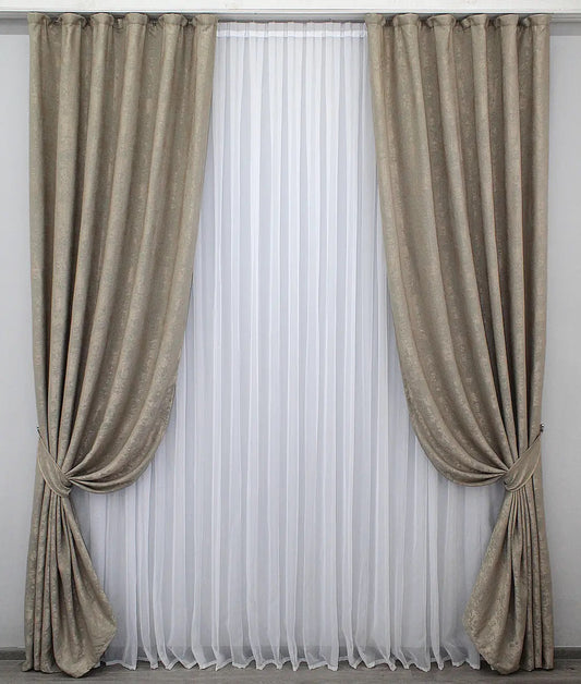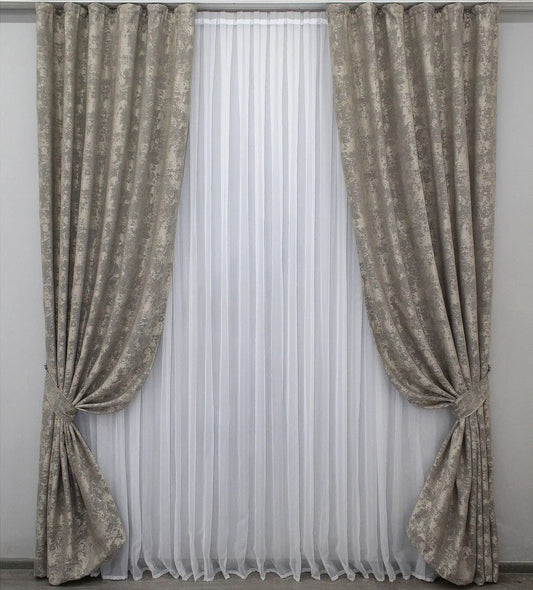 Jacquard Curtains Grey-Beige – Sultan YL Collection – Set of 2 Panels
