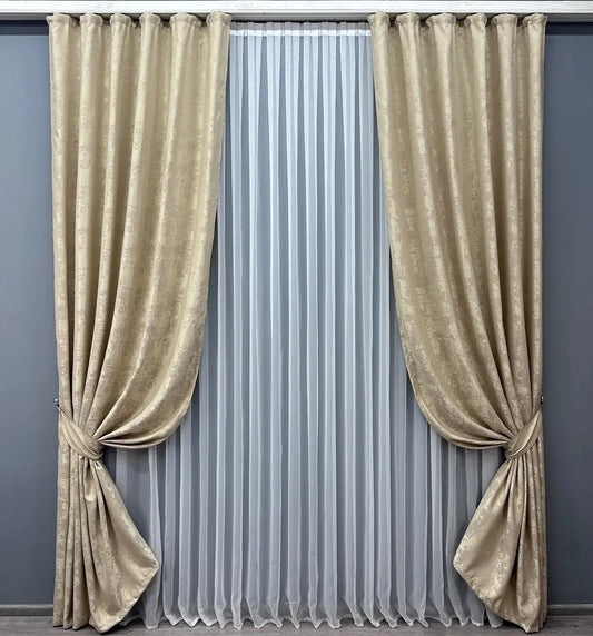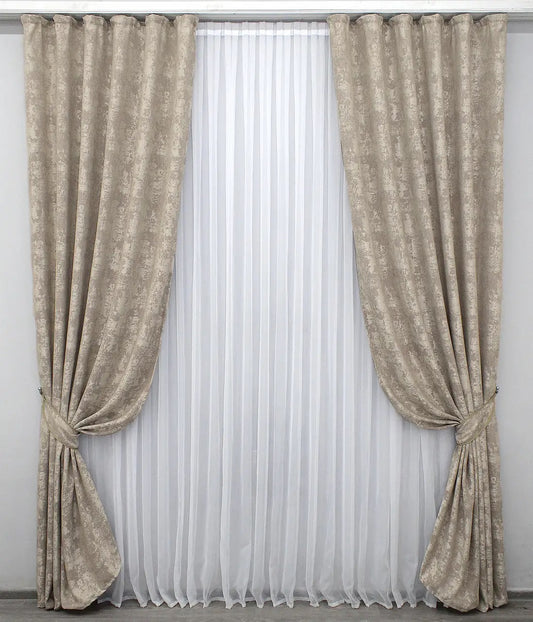 Jacquard Curtains in Beige – "Sultan" Collection – Set of 2 Panels
