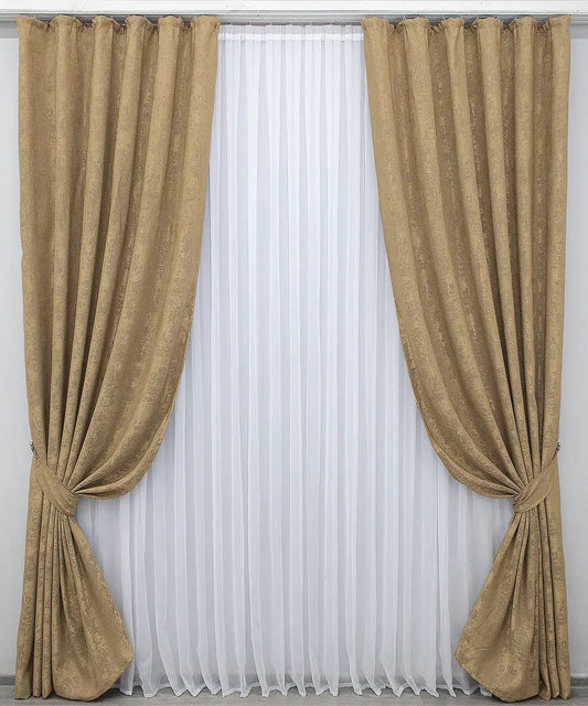 Jacquard Curtains Honey-Golden – Sultan YL Collection – Set of 2 Panels