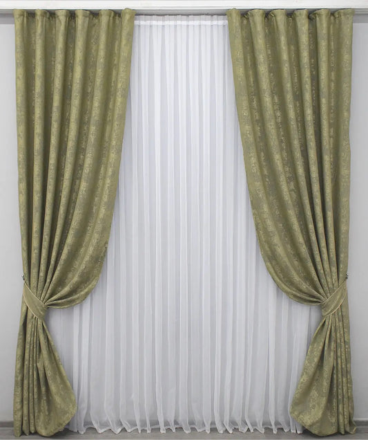 Jacquard Curtains Olive – Sultan YL Collection – Set of 2 Panels